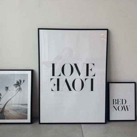 IKEA 40 x 50 cm ramme i hvidt træ og plakat med teksten “Choose a happy life.” i stor typografi og mindre tekst nederst. Plakaten er indrammet i en lys ramme og egner sig til ophæng i f.eks. stue, soveværelse eller kontor som enkel vægdekoration.