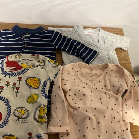 Mini rodini flyverdragt mørkeblå (ubrugt), bodyer i Joha samt MarMar babyhue. Str 68/74. Sælges samlet. Kan hentes eller sendes.