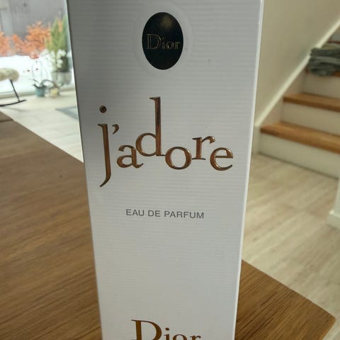 Dior J’adore Infinissime eau de parfum til kvinder. Flakonen har den karakteristiske dråbeform med gylden hals og klar glasbund.