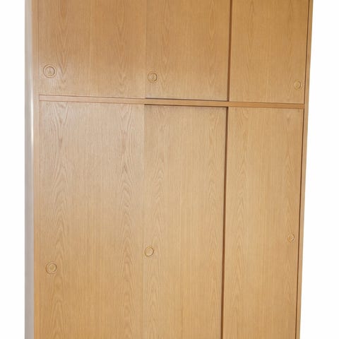 Garderobeskab i egetræ med faste hylder og udtrækshylder. Skabet har flere åbne rum til opbevaring samt en sektion med låge øverst. Udtrækshylderne er udført i træ med synlige sinkesamlinger i siderne. Egner sig til opbevaring i f.eks. stue, soveværelse eller gang, hvor der er behov for hyldeplads og overskuelig organisering af indholdet. Skabet blev specialbygget af Nick hos Copenhagen Furniture Company i 2020 for 62.000 kr. Vi beder om 10.000 kr. Den eneste hage: det skal skilles ad og samles igen af en professionel, hvilket ville betyde en dags arbejde med Nick for yderligere 5.000-10.000 kr.
