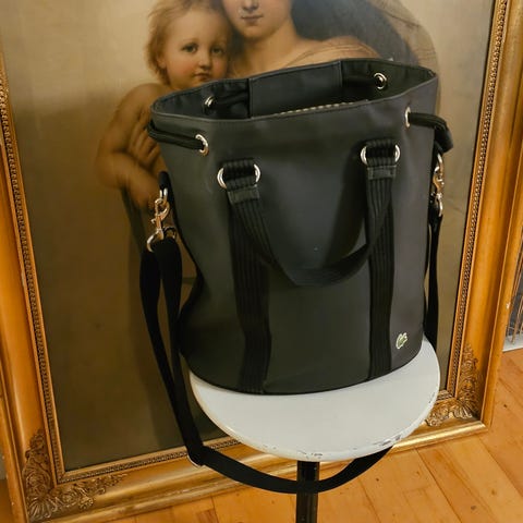 Lille søde rygsæk fra Lacoste i sort og med sølvspænder og lignende