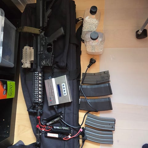 2 stk M4a1 gevær i metal. Den ene er med punkt sigte og kort løb.