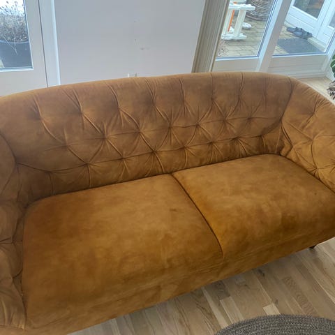 Sofaen er i en rigtig velholdt og i god stand. Jeg sælger udelukkende, da jeg er flyttet sammen med min kæreste. Der er et hvidt mærke på et af benene.