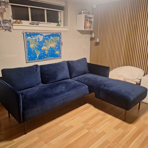 Blå sofa med chaiselong