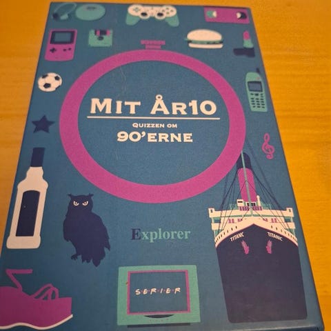"Mit år10" 80'erne og 90'erne. Spillet er et quiz- og selskabsspil, hvor deltagerne svarer på spørgsmål om et bestemt årti. Egnet til brug i hjemmet som underholdning for flere spillere ad gangen. Det ene spil har aldrig været åbnet, og det andet er aldrig brugt. Pris: 75,- kr. pr. stk.