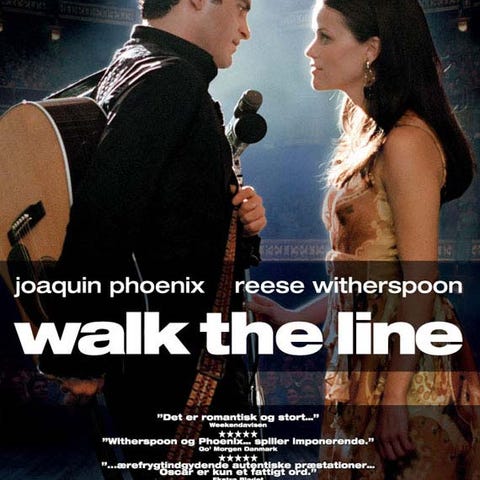 Walk the Line dvd film. Dvd-udgave af spillefilmen "Walk the Line" med blandt andre Joaquin Phoenix og Reese Witherspoon. Forsiden viser aldersmærkning 11 år. Velegnet til afspilning på dvd-afspillere, der understøtter standard dvd-format.