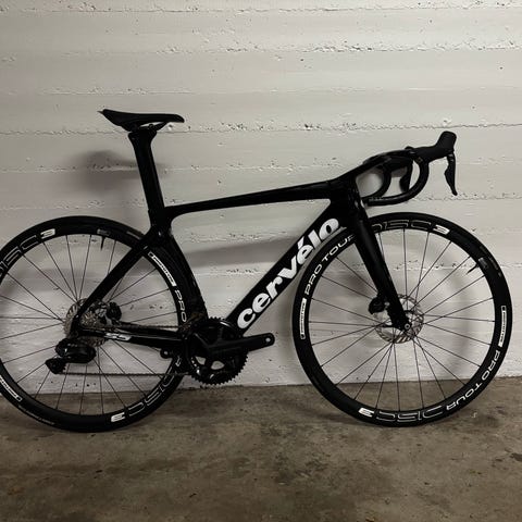 Cérvelo S5 med fuld Shimano dura ace 9100 di2 gruppe fra 2021. Ceramic lejer i krankboksen som spinner fantastisk. Kæden er vokset. Forrygende hurtog cykel ! Passet og plejet efter alle kunstens regler. Et par små lakskrammer hist og her men ikke noget der går ud over farten.
