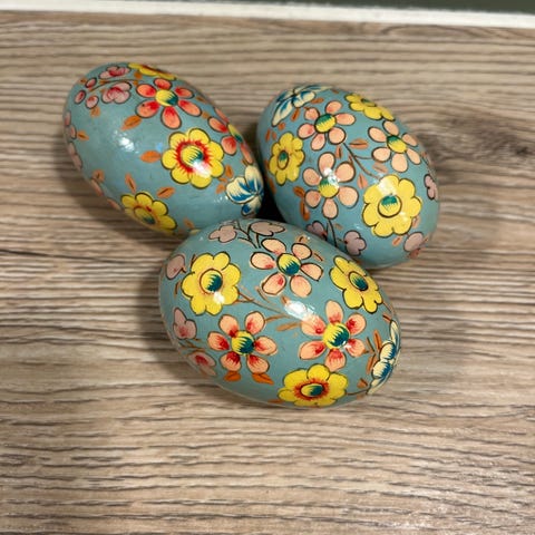 6 fine gamle påskeæg i træ