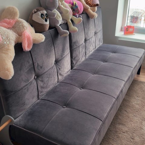 Rigtig flot sovesofa, som også fungerer fint som sofa og med et par puder tænker man ikke, at det er andet end en sofa.