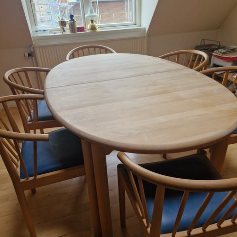 Skovlunde bord samt 6. Stk. risskov stole til salg, samlet sæt for 4000 kr.