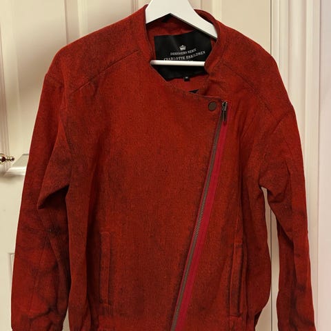 Designers Remix jakke til kvinder i str. 36. Jakken er lilla og har hætte med snøre samt stor forlomme foran. Modellen er let og egner sig som regn- eller yderjakke afhængigt af vejr og lag-på-lag. Passer til hverdagsbrug og kan kombineres med både casual og mere pænt tøj.