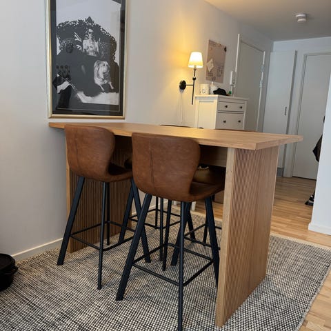 Landholm barbord (højt spisebord) fra Ilva med bordplade i matlakeret egefinér og stel i matlakeret egefinér, nypris 5.799,- Vi kan skille benene fra bordpladen, hvis nødvendigt ved afhentning.