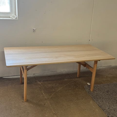 BM84, eller Model 6284, spisebordet er et af de sidste spiseborde, Børge Mogensen designede i sin shaker-serie, der tager inspiration fra amerikanske shaker-borde. BM84 Spisebordet er designet i 1964 og er i massivt egetræ. Bordet fås i forskellige behandlinger, så du kan få det bord, der passer lige til dig og dine behov. Ben er monteret med en synlig messingskrue. Der kan tilkøbes tillægsplader til bordet i sort MDF. Design: Børge Mogensen