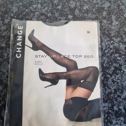 Bløde og lette selvsiddende knælange nylonstrømper fra Change Lingerie. Lækker kvalitet.