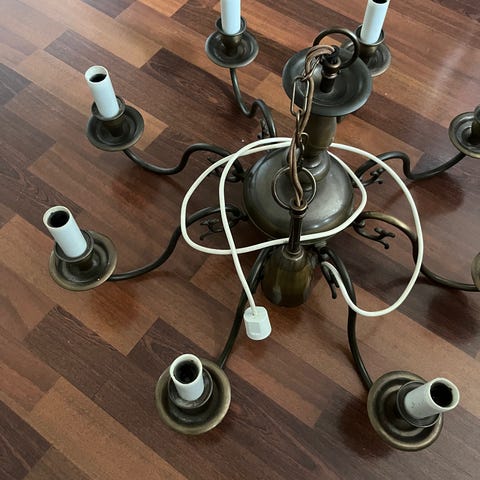 Super flot bruneret messing kirkekrone / kysekrone med 16 arme.