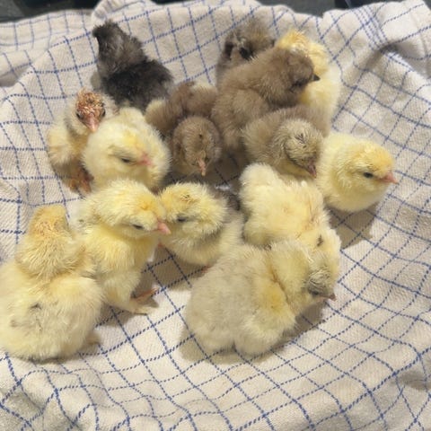 10 varmefri kyllinger af stor variant. 7 stk fra uge 52 og 3 fra uge 2. De er ikke mulige at kønsbestemme i denne alder.