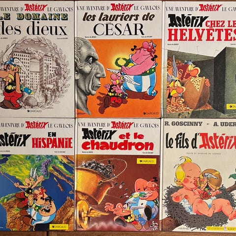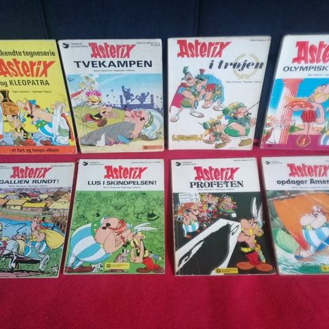 Asterix samling af tegneserier med blandede titler. Pakken indeholder flere forskellige Asterix-album på dansk, herunder blandt andet historier som Asterix og Kleopatra, Asterix opdager Amerika, Asterix i trøjen, Asterix og vikingerne, Asterix olympisk mester, samt historien om Obelix, da han faldt i gryden med trylledrik som lille. Tegneserierne er i albumformat og egner sig til læsning for både børn og voksne, der ønsker klassiske Asterix-fortællinger på dansk samlet i én lot.