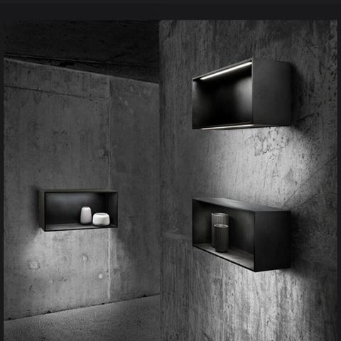 2 stk hylder i kasse, helt nye, måler 30 x 50 cm. Mørkt træ. Samlet