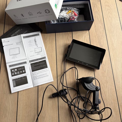 Funktioner: Bluetooth til musik og håndfri tale, indbygget GPS, WiFi, og adgang til alle dine yndlingsapps via Google Play Store (Spotify, Google Maps, YouTube osv.).