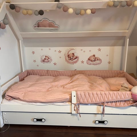 Pæn og meget velholdt allergivenlig madras fra Änglamark kan medfølge.