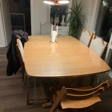 Massivt Bøg har fået sol derfor farve forskel på bord og tillægsplader