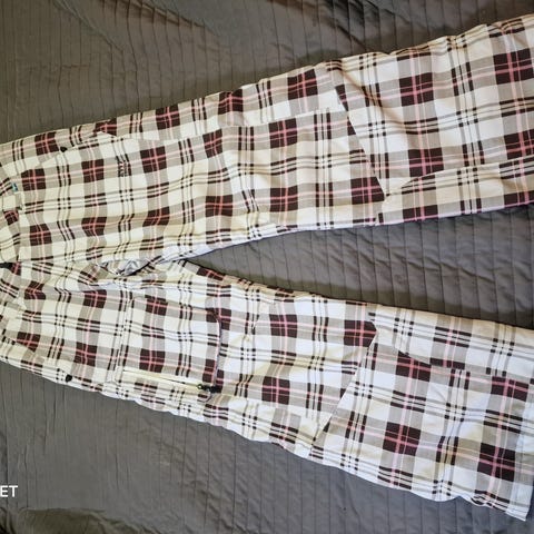 Flotte retro skibukser i ret god kvalitet. Dejlig varme, med flees stof inden i. Størrelsen er 40, men passer bedre til størresle 38. Bukserne sidder tæt til kroppen.