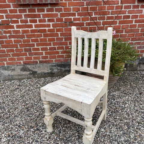 Hvid træstol trænger til en kærlig hånd