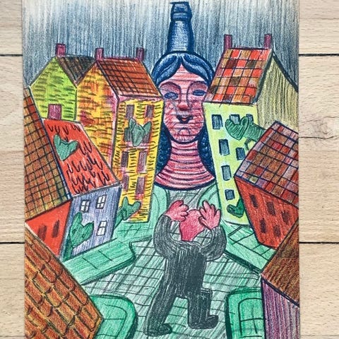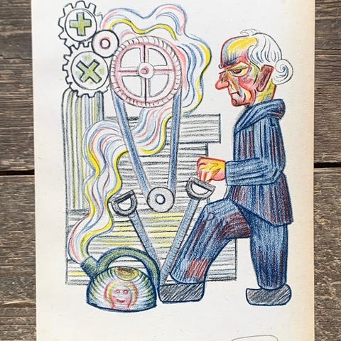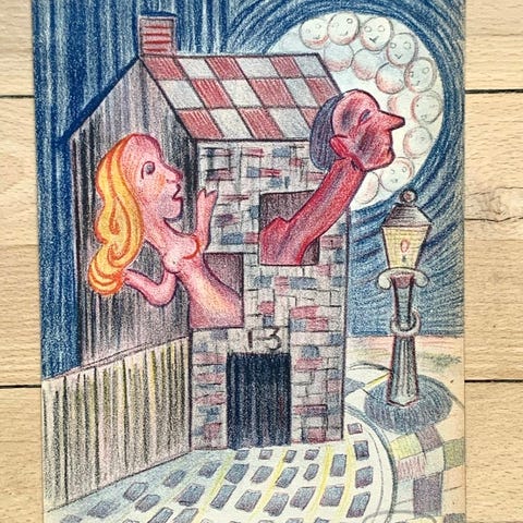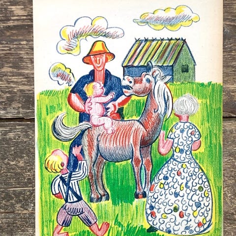 Litografi med titlen "Bryllupskareten" fra 1963, skabt af den berømte danske kunstner Henry Heerup.