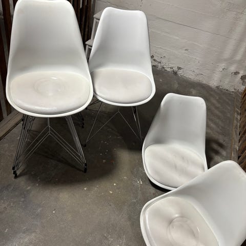 Flotte hvide stole fra IKEA, med hvidt stofbetræk. Betrækket er blevet vasket siden billederne blev taget. Der er enkelte små brugstegn, som ikke er meget synlige.