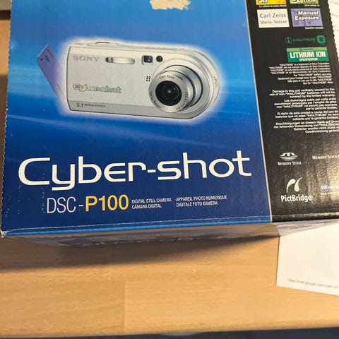 Sony Cyber-shot DSC-P10 digitalkamera i sølvfarvet kabinet. Kameraet har 5,0 megapixel opløsning og Carl Zeiss-objektiv med optisk zoom. På bagsiden er der LCD-skærm til visning og menuindstillinger samt betjeningsknapper til navigering. Kameraet har indbygget blitz på fronten og programvælgerhjul på toppen med forskellige optageindstillinger. Der er håndledsrem monteret samt tilslutningsporte i bunden/ siden til kabel. Velegnet til almindelig hverdagsfotografering og simple videooptagelser.