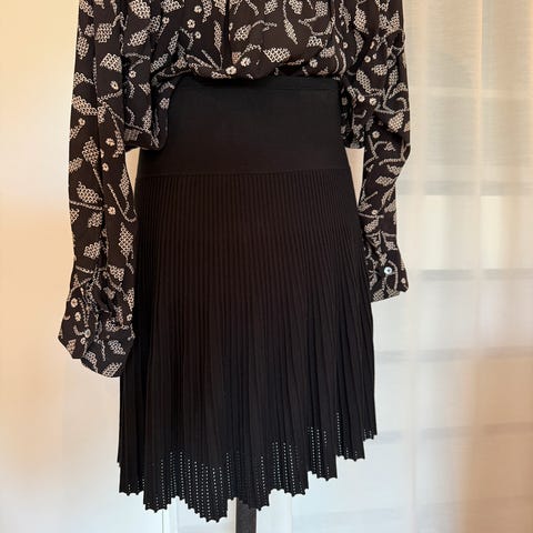 str. 40, Stella Nova nederdel, Heste, Silke, Næsten som ny, Mål: livvidde: 42x 2 cm = 84 cm og længde= ca 66 cm. Meget smuk og elegant Stella McCartney silkenederdel med heste motiver.