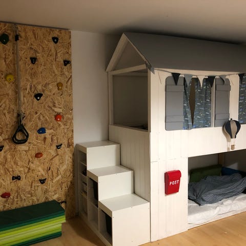 En både solid og æstetisk højseng, som giver ekstra gulvplads/plads til hyggehule på børneværelset.