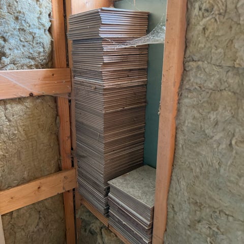 Terracotta gulvfliser , taget op fra entré gulv - formentlig fra 1970 , da huset blev bygget