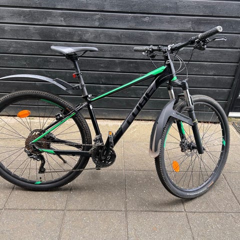 Cube mountainbike “analog” unisex med 17 tommer stel og 29" hjul. Cyklen er i god stand uden rust på kæde og støddæmper, den virker som den skal.