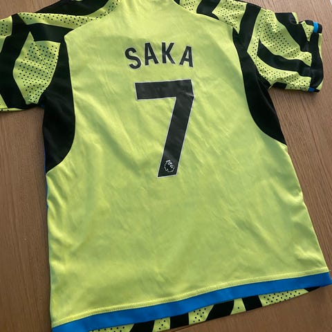 Hjemmebanetrøje (ikke original). Navn/nummer på trøjen er Saka/7.