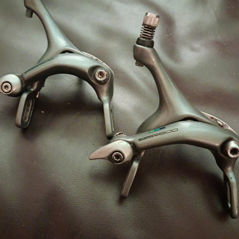Shimano Ultegra 6500 fælgbremser i rigtig flot stand helt uden de typiske slidmærker. Stramme fjedre og originale bremseklodser. Kan sendes for + 50 kr. ved forudbetaling. Se også mine andre annoncer for Ultegra dele og komplet gruppe. Kan sendes for + 50 kr. ved forudbetaling