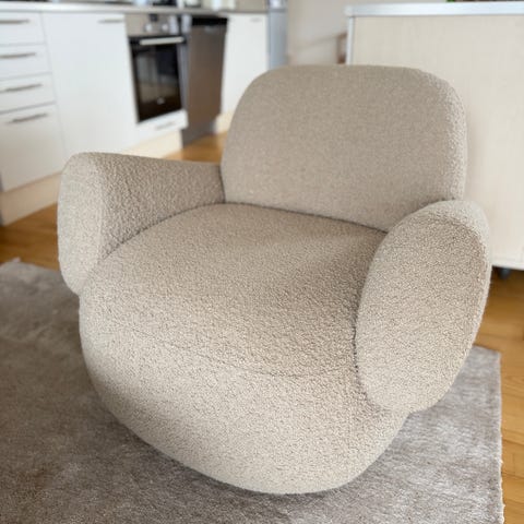 Har primært stået til pynt i indretningen, men vi har siddet i den omkring 10 gange. Virkelig behagelig at sidde i og smuk at se på.