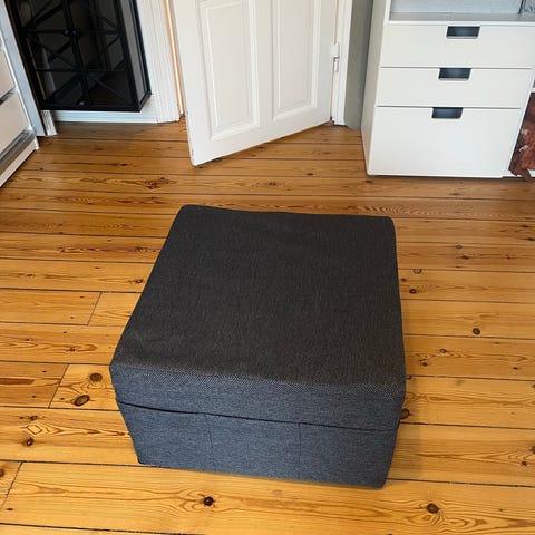 Foldemadrassen er 70x180x8 når den er udfoldet.