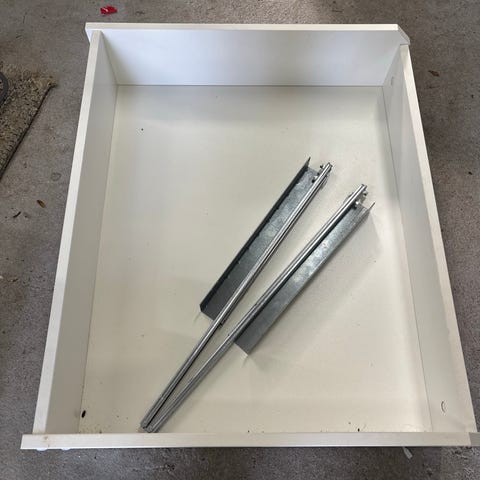 En skuffe i ny indpakning Komplement fra IKEA. Den er grå.