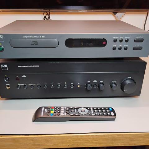 Meget velspillende lille kvalitets forstærker m cd indbygget og m virksom fjernbetjening