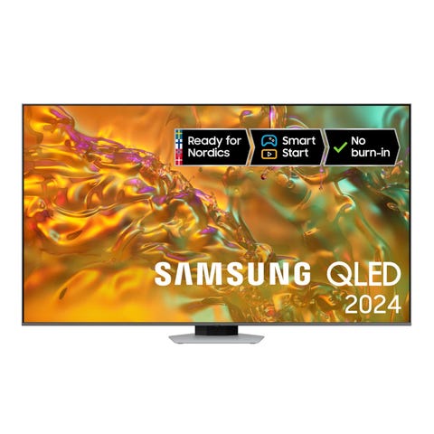 QLED 4K UHD-model med tynd ramme og vægmontering som vist på billederne.