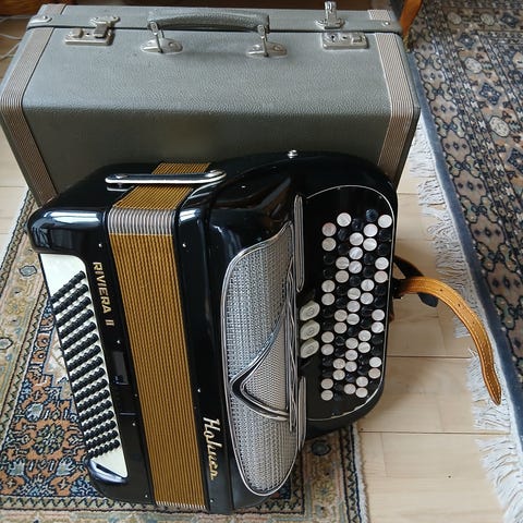 Harmonika i god stand. Få overfladiske brugsspor. Inkl original kuffert med nøgle.