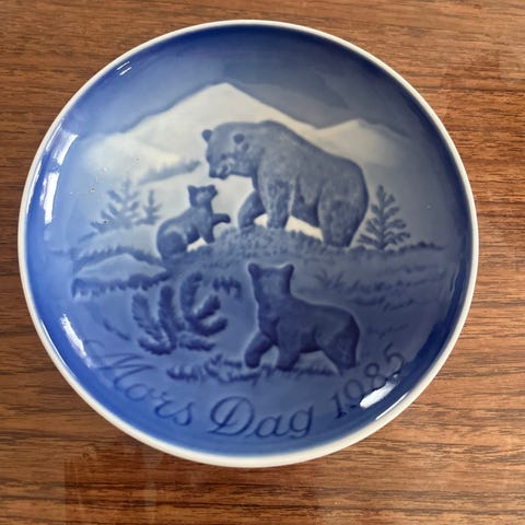 Bing & Grøndahl Mors Dag 1987 tallerken porcelæn blå-hvid