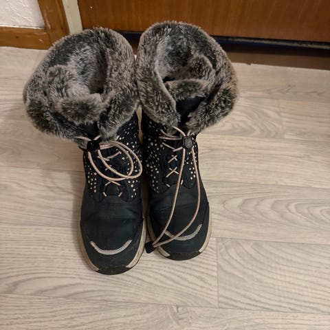Viking børnestøvler str. 33 til unisex. Gore-Tex støvlerne er sorte med mønstret ydersål og justering med drejelukning på siden. Overdelen er i syntetisk materiale med forstærkninger ved tå og hæl. Skoene har høj skaft for bedre støtte om anklen og profileret gummisål for godt fodfæste. Velegnet som hverdagssko eller til udendørs brug i køligere og fugtigt vejr.