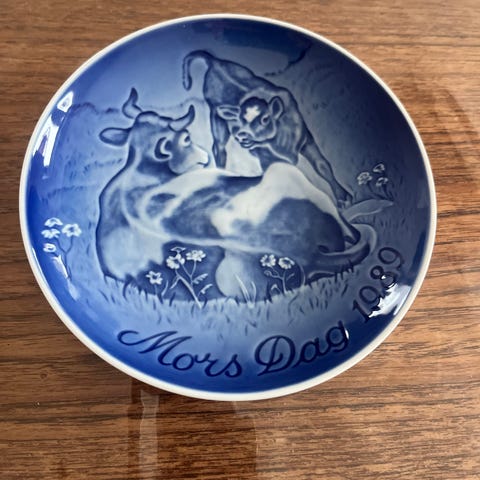 Bing & Grøndahl mors dag platte 1983 blå porcelæn