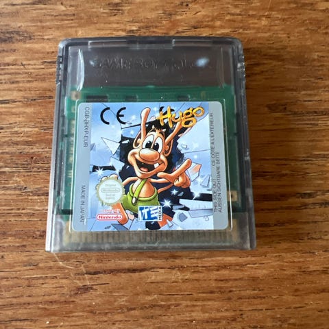 Nintendo Game Boy spil Hugo. Original spilcartridge til den klassiske Game Boy-konsol med Hugo-spillet. Fysisk kassette uden tilbehør. Velegnet til brug på kompatible Game Boy-enheder, eksempelvis til samling eller brug med original hardware.