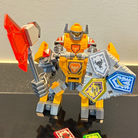 LEGO Nexo Knights byggesæt 70361 med køretøj og minifigurer. Sættet indeholder et kampkøretøj med bevægelige dele samt flere figurer med våben og tilbehør. Komplet og fra ikke-ryger hjem.