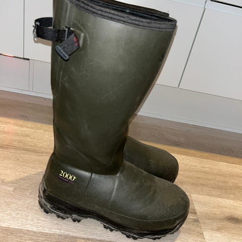 Gummistøvler, til voksne og større børn, str 39, mørkegrønne. Mrk RTC = Rock Tool Company. Højde 41 cm. Kan evt varieres i højden ved at lave omslag - det er det “knæk” du kan se på støvlerne (fremgår af fotos). Løs indlægssål, strop bagpå. Velegnet til brug i vådt og mudret terræn, f.eks. havearbejde, skovture eller andet udendørs brug. Kun brugt ganske få gange.
