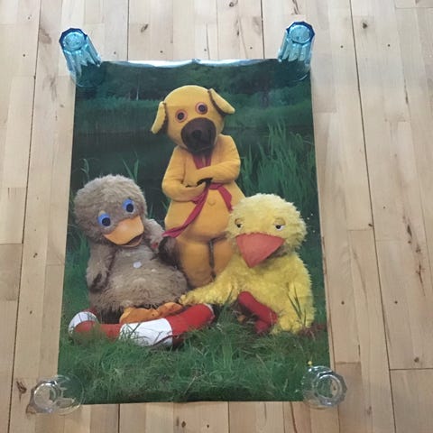 Plakat af to bamser i tøj.
