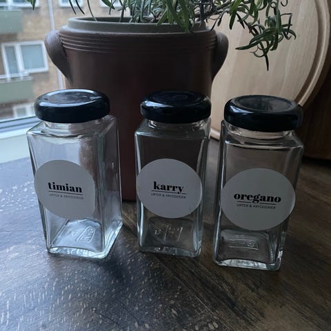 Glas og flasker med sorte skruelåg